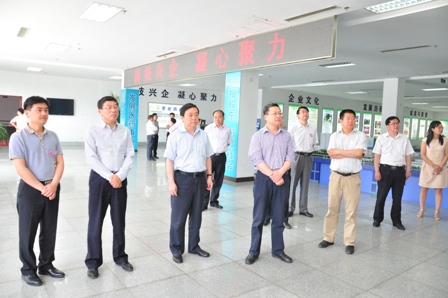 上图为梁文跃副主任(前排左四)一行参观公司展厅的场景