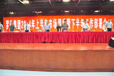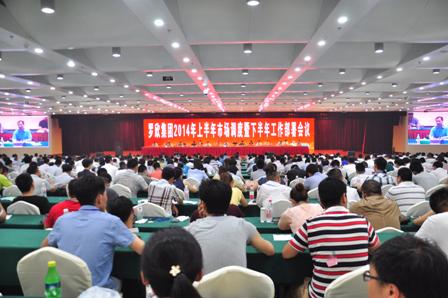 7月12日,罗欣集团2014年上半年市场调度暨下半年工作部署会议隆重召开。集团党委书记、董事长刘保起先生,集团股份公司副总经理、销售公司总经理、销售总监钱朝龙先生,以及销售系统各分公司、单位、部门,部分市场销售人员共一千二百余人参加了会议。