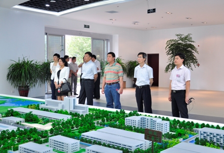 上图为朱晓新书记(前排右四)一行参观展厅的情景