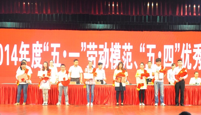 上图为罗欣集团“五·一”劳动模范、“五·四”优秀青年表彰大会颁奖现场