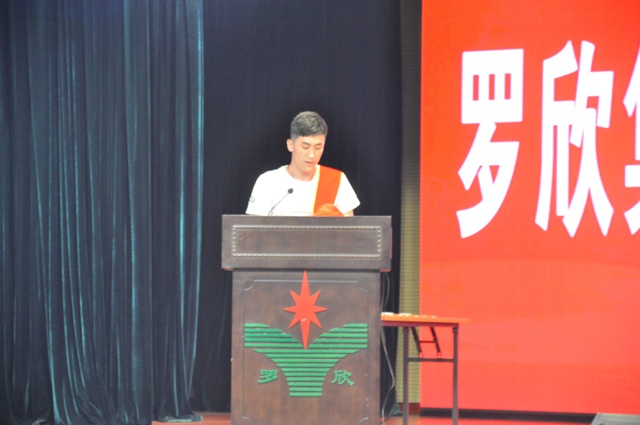 上图为罗欣集团“五·一”劳动模范进行演讲时的情景