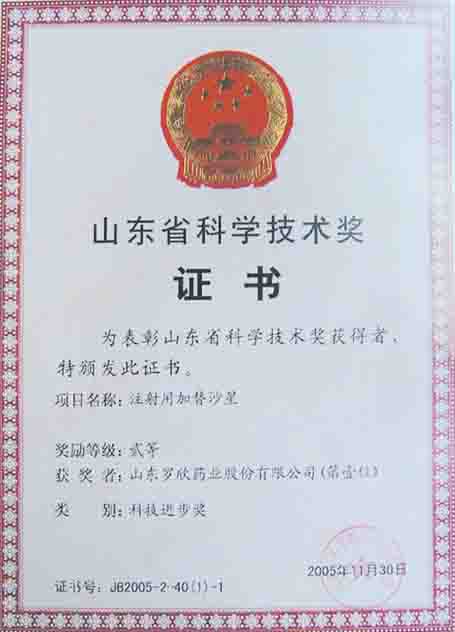 热烈祝贺山东罗欣药业股份有限公司“注射用加替沙星”获得山东省科技进步奖二等奖。