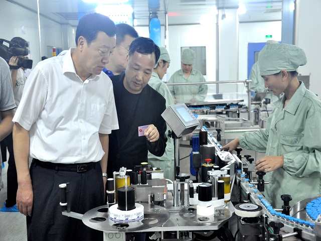 上图为山东省副省长张务锋一行参观公司生产车间时情景