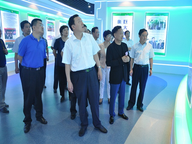 上图为山东省副省长张务锋(前排右四)参观我公司展厅时的情景