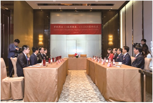 上图为罗欣药业CJ医药健康,CJ-12420签约仪式现场